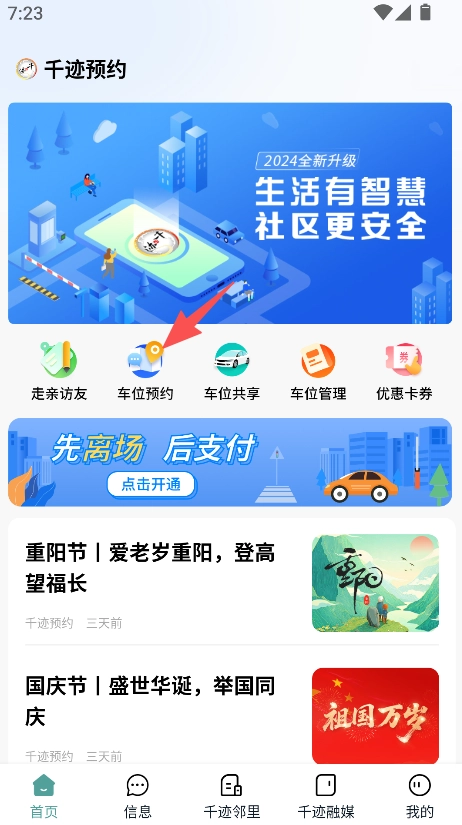 进入首页,点击车位预约。