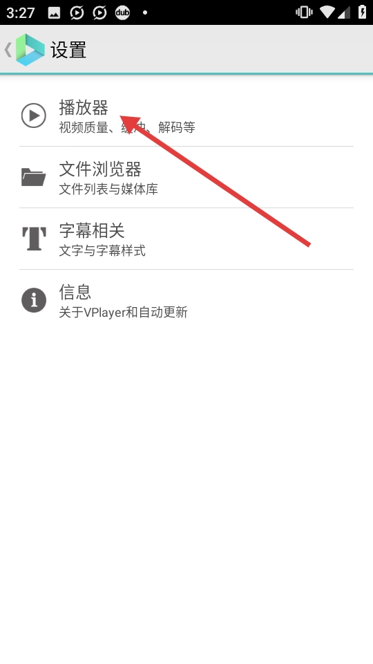 进入设置界面后,找到并点击【播放器】选项,即可进入播放器设置页面。