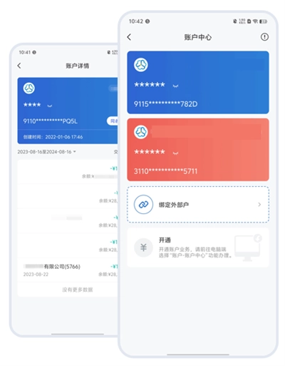 企业账户信息、账户余额与交易明细可通过一站式查询管理功能实现便捷操作,信息呈现清晰直观。