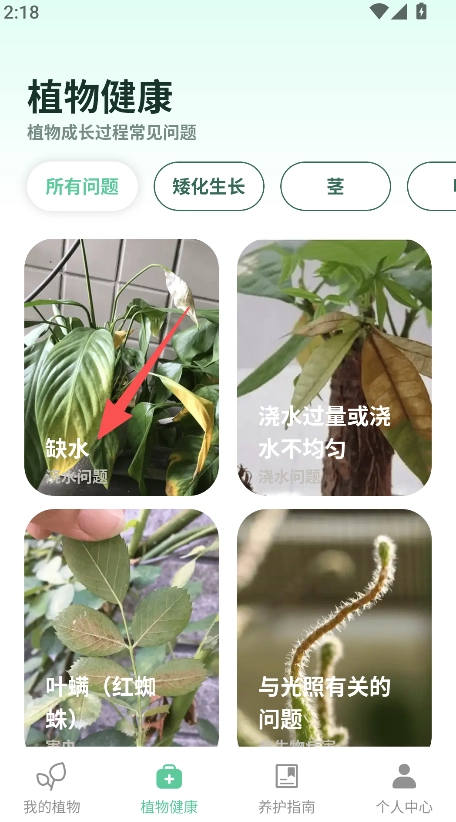 问题展示直观,植物健康问题以图文形式呈现,能让用户快速识别植物症状,便于对照判断。