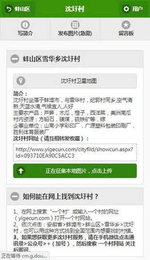 每个村庄都拥有专门的介绍页面,上面涵盖了地图定位、联系方式、本地特产以及村务信息等内容。
