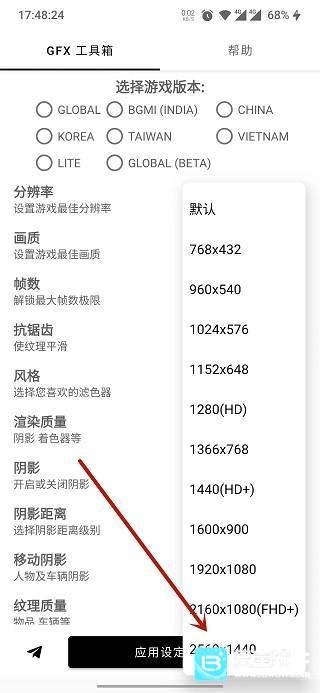 若想借助正版gfx工具箱提升pubg、地铁的画质,大家得先在主页顶部挑选不同版本,这里面涵盖国际服、国服、韩服等八个版本,选好之后就能对画质开展自定义调整了。