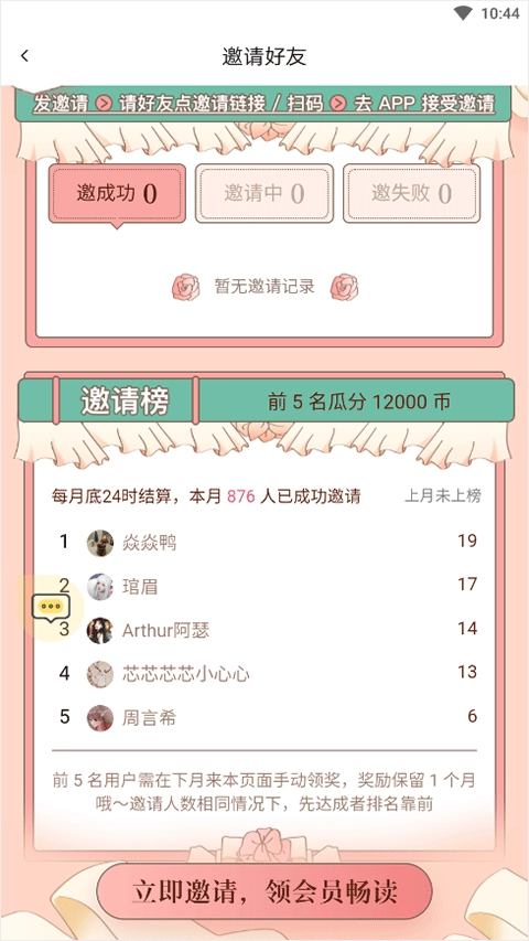 在底部区域还可查看已成功邀请的好友记录。