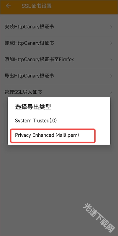 导出类型选择下方这个【这里是未root环境,选择.pem格式;若已root且有更高要求,可选择.0格式】