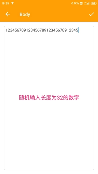 之后用户在Body的输入框中任意输入长度为32的数字