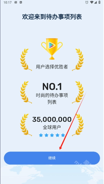 首先前往魔趣网下载并安装todolist每日计划清单软件,随后点击“继续”按钮进入软件界面。