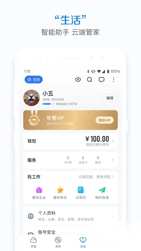 115网盘以云存储为核心,是一个安全稳定、高效智能且能陪伴用户长久的数字生活平台,它可以协助用户存储大量信息化数据,还能达成数据在多终端的同步以及文件的随时存储与快速调取;在保障数据安全存储的前提下,平台还配备了智能管理、趣味空间、生活服务等多样化功能。
