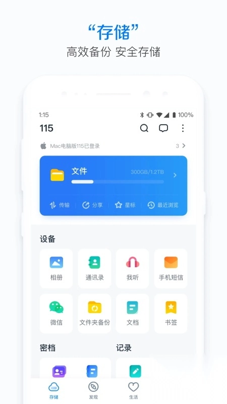115网盘作为一款网盘应用,能够为用户提供文件、设备、密档、记录等多方面智能高效的数据存储与记录管理服务,拥有海量长期存储空间,可轻松容纳一生的数据,用户还能随时随地查看和管理各终端上的个人数据。