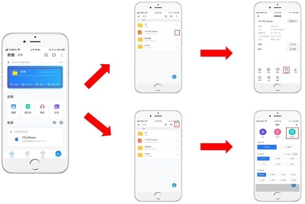 文件「加密」:「加密」功能用于保护用户重要文件以防泄露,加密后的文件不会显示在文件列表里,只有进入「隐藏模式」才会呈现,而进入「隐藏模式」需要验证「安全密钥」。