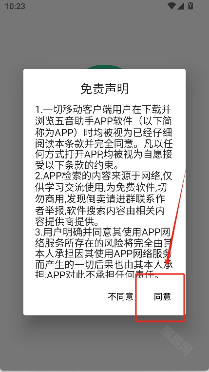 首先在魔趣网并安装五音助手,点击“同意”进入软件
