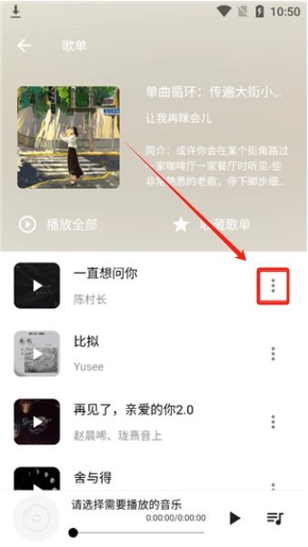 进入歌单之后点击歌曲右边的“三个点”;