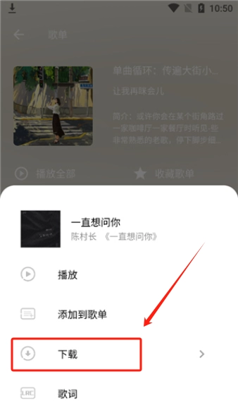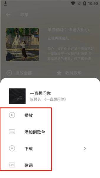 弹出的窗口会显示“播放”“添加到歌单”等选项,此外还能查看歌词。