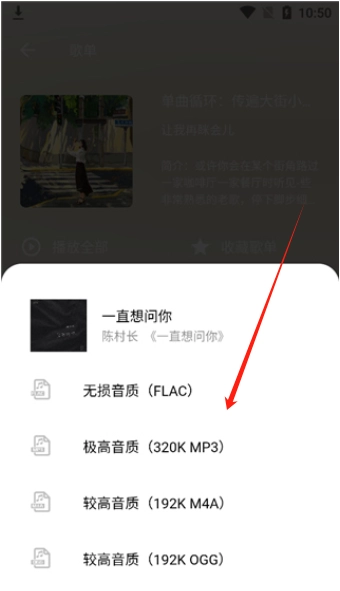 在弹出的功能选项里点击相应按钮,这里提供了多种不同的音质选项供大家挑选,选定你想要的音质后就能开始使用啦。