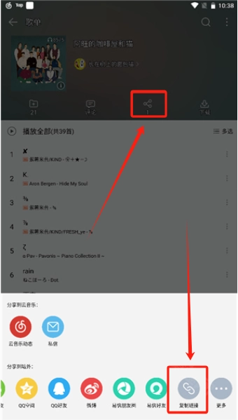 然后点击页面上的“分享”按钮,接着选择“复制链接”;