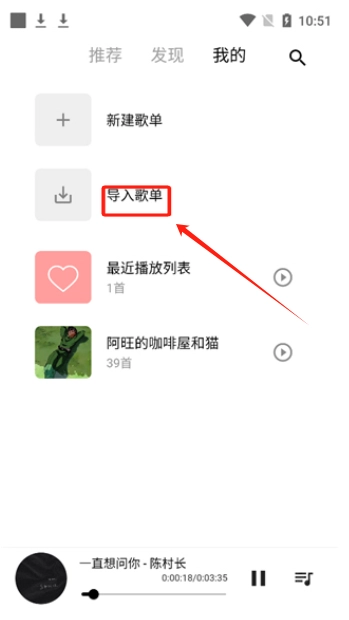 返回首页点击上方“我的”,找到“导入歌单”;