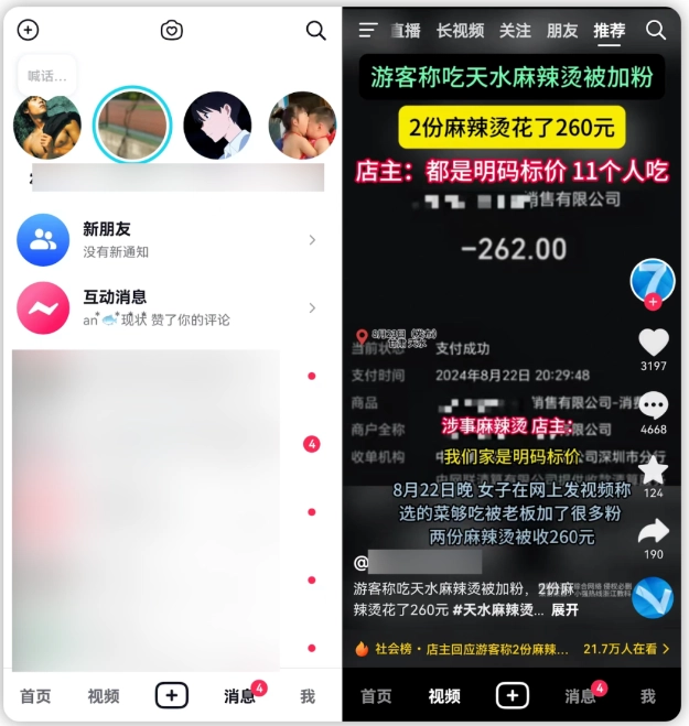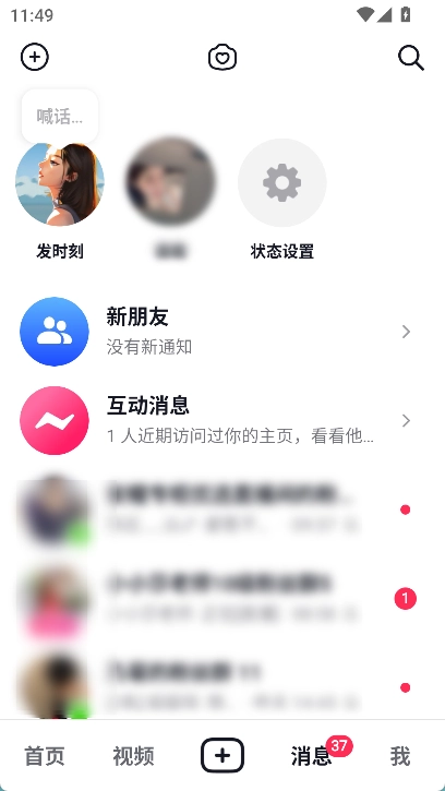 在底部点击【消息】,就能看到自己抖音关注的博主直播动态、粉丝群消息、互动消息以及新朋友的新通知等内容。这一点和抖音是相同的。