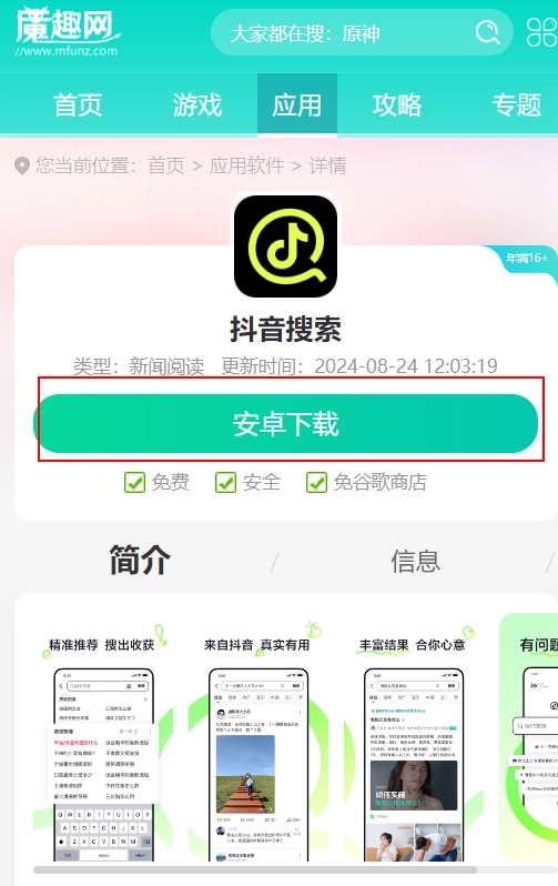 你可以直接前往魔趣网的抖音搜索页面(链接为https://m.mfunz.com/soft/592.html),找到对应的按钮并点击,然后耐心等待安装流程完成即可。