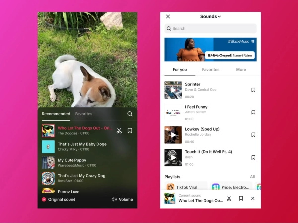 ● 音频库:点击搜索图标就能进入音频库,这里面有热门TikTok音频、各类播放列表,还可以搜索特定的歌曲或音频片段。