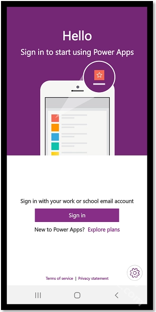 在移动设备上启动 Power Apps 应用,接着通过 Azure Active Directory 账号凭据完成登录操作。