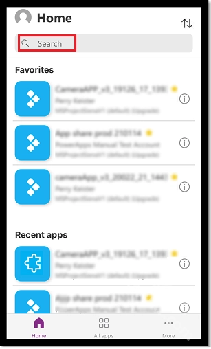 当登录 Power Apps Mobile 应用时,默认屏幕会展示最近使用过的应用。