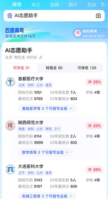 ai志愿助手,AI志愿助手实际上是百度推出的一项功能,这里为大家提供的是百度的安装包。该助手经过众多学生的实际体验,反馈普遍良好。百度AI志愿助手借助AI智能技术,为广大考生提供精准的志愿填报分析服务,考生只需输入分数,就能查看与之匹配的大学和专业,同时还能获取录取概率分析!