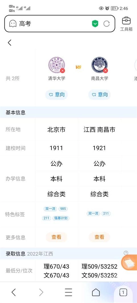 最后,页面会呈现这些院校的基本信息对比。要是想知晓更多细节,可点击“更多信息”进行查看。