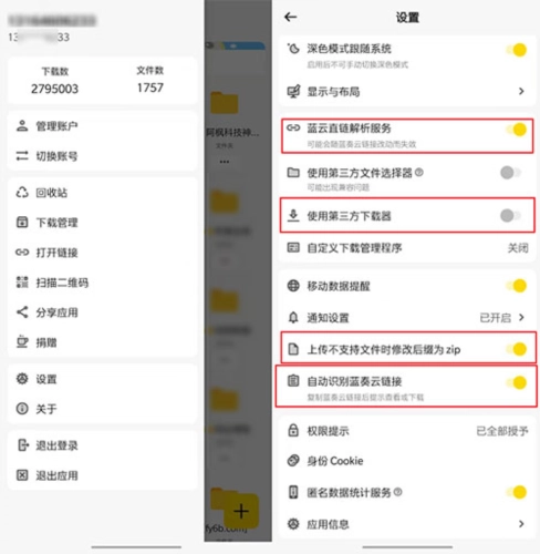 关键是它还具备不少实用功能,像蓝奏云直链解析、自动修改后缀、自动识别蓝奏云链接之类的。