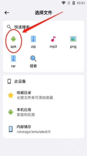 点击“文件”将进入下图界面,点击apk;