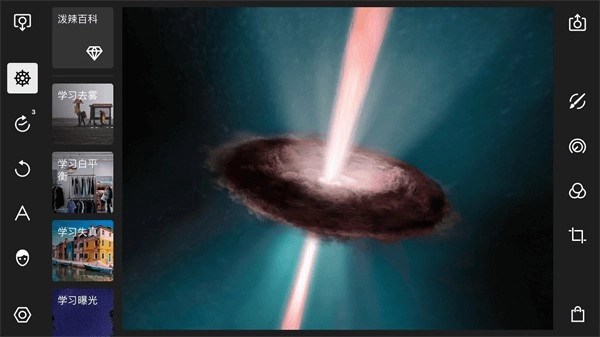 在引导教程面板下,总共包含泼辣百科、学习去雾、学习白平衡、学习失真、学习曝光、学习全局调整、学习圆形调整、学习渐变调整、学习选色调整、学习笔刷、开始使用、键盘快捷键这十二个选项。