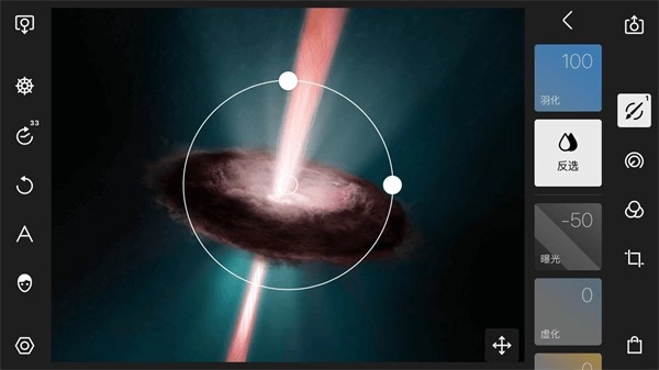借助圆形调整功能,我们能够对画面的局部区域进行针对性调整,以此达成更精准的画面优化效果。在新建一个圆形调整图层后,界面里会生成一个圆形区域,该圆形以外的画面部分会受到我们后续调整参数的作用,而圆形以内的区域则不会被这些参数所改变。