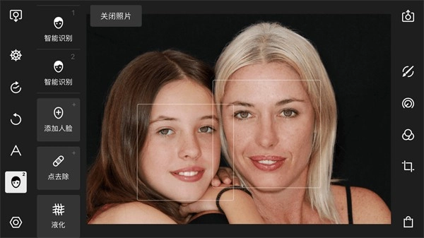 泼辣修图的人像面板下,包含了智能识别、添加人脸、点去除和液化这四个大类。