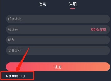 点击【注册】按钮后,可选择手机号或邮箱进行注册,推荐优先使用手机号;若想通过邮箱注册,点击左下角的【切换为邮箱注册】即可。