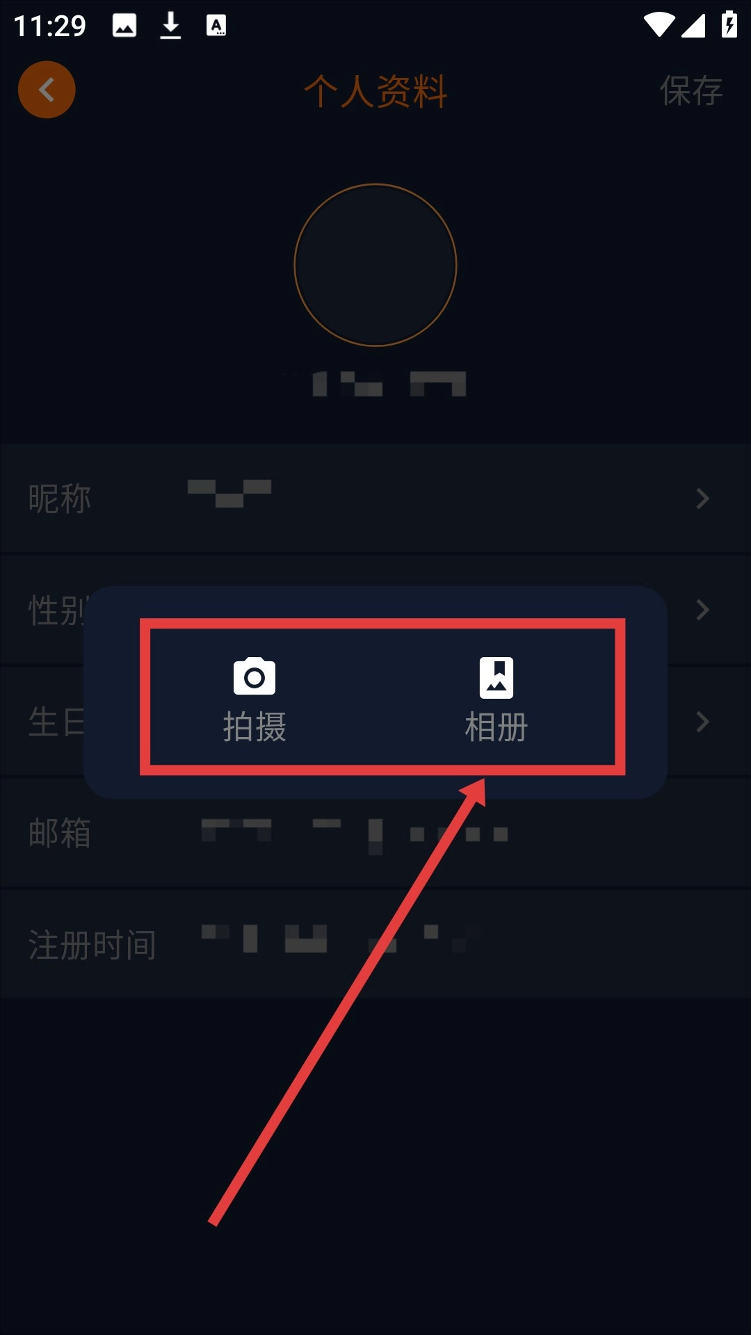 在弹出的选项里,挑选【拍摄】或者【相册】,就能完成头像更换啦。