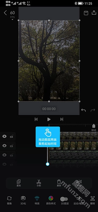上下拖动图层能够改变其层级顺序,左右拖动则可以调整图层在视频里的出现时间。