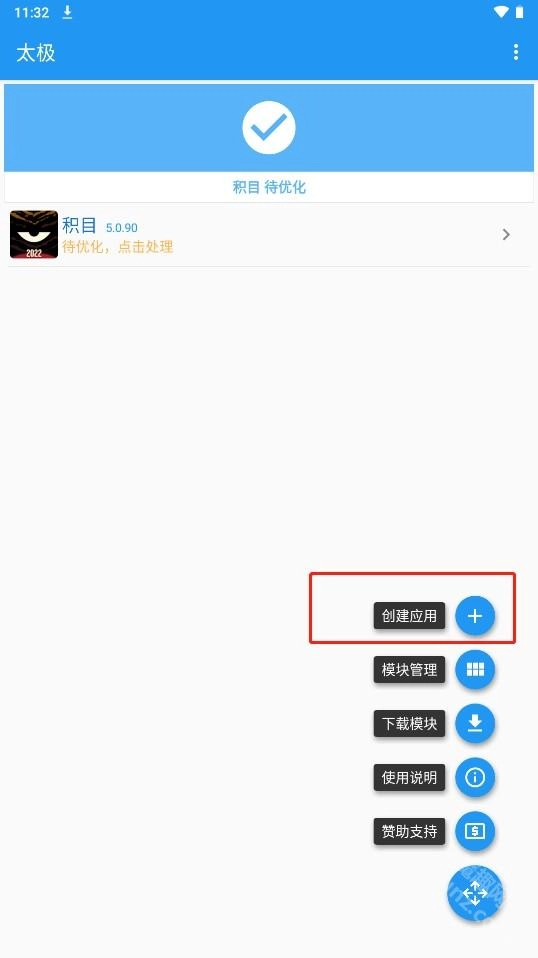 点击右下角的展开按钮,就能看到创建应用、模块管理以及模块这些选项。