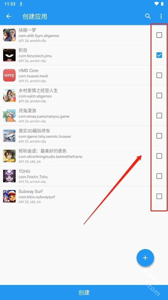 点击创建应用,勾选需要创建的应用,点击创建