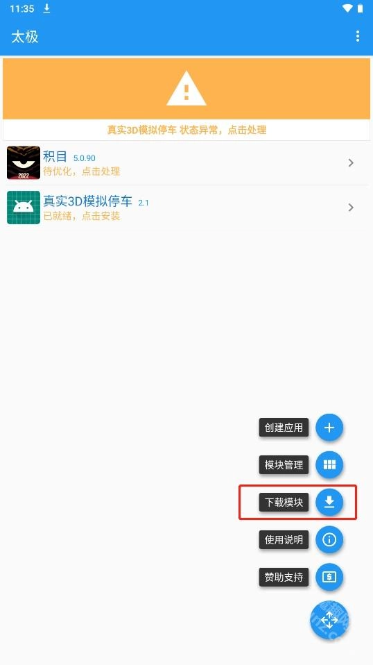 打开模块管理界面,就能查看已安装的模块;勾选模块时,系统会提示该模块所支持的应用版本,而应用版本可在太极主界面找到;若版本不兼容,模块将无法使用。