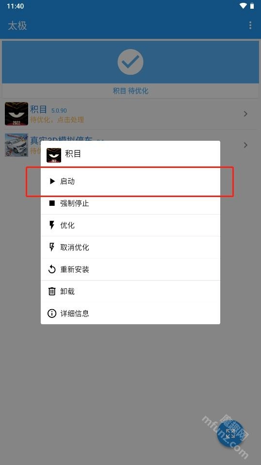 长按应用列表即可查看相关选项,点击“启动”按钮,就能启动对应的应用。