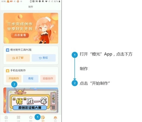 橙光游戏客户端,依次点击“创作”、“开始制作”;