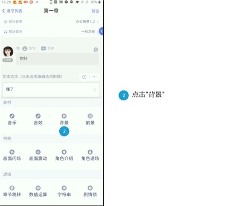 在编辑章节的过程中,需对背景图、章节名称、音乐等相关信息进行完善。