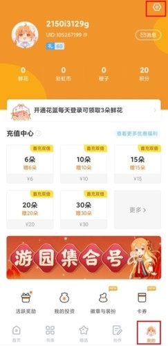 在我的页面中点击右上角的设置按钮;