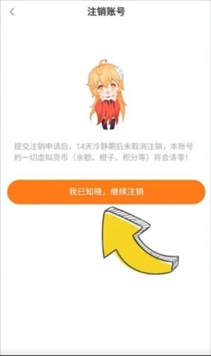 点击【注销账号】按钮,接着点击【我已知晓,继续注销】选项;