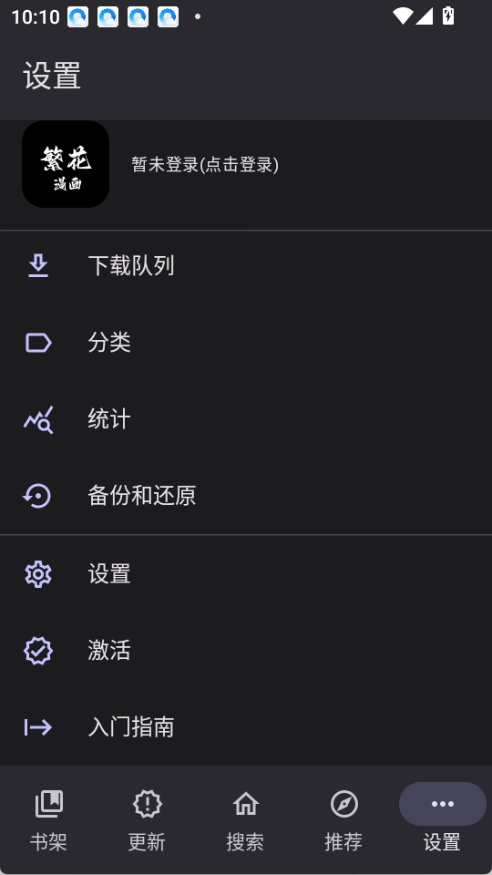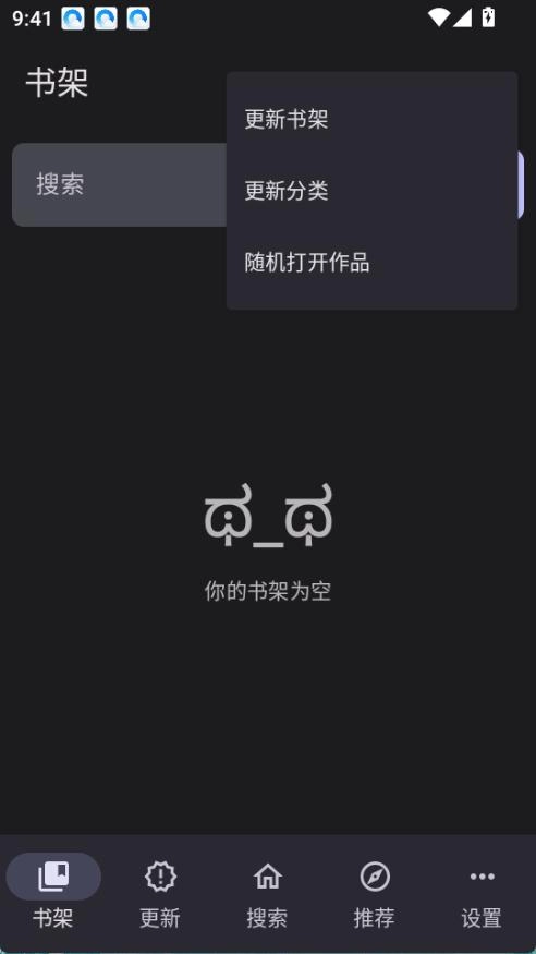 *部导航栏仅保留“书架、更新、搜索、推荐、设置”这5个核心功能模块。