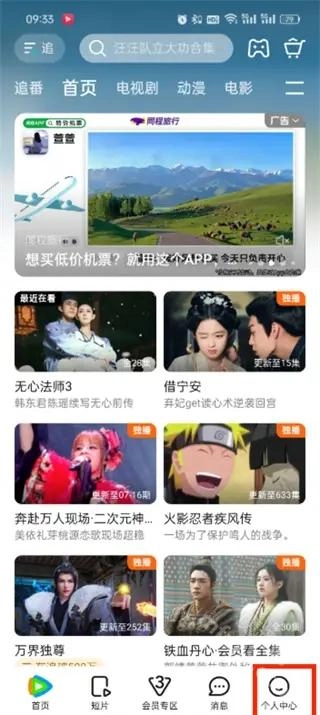 打开腾讯视频应用程序,点击页面右下角的“个人中心”选项。