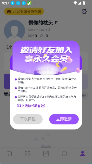 点击立即邀请好友体验就能看到邀请码了