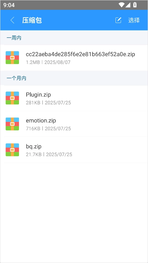 压缩包完成之后在手机的储存中找到所好的文件。