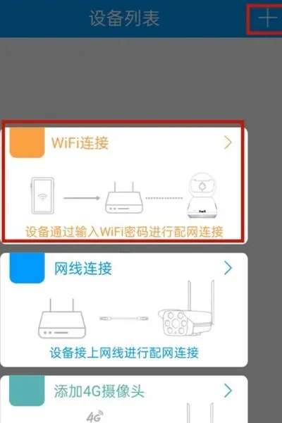 打开乔安智联后,点击加号图标,点击wifi连接。