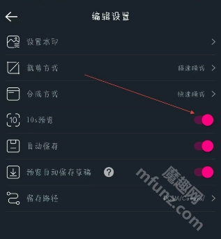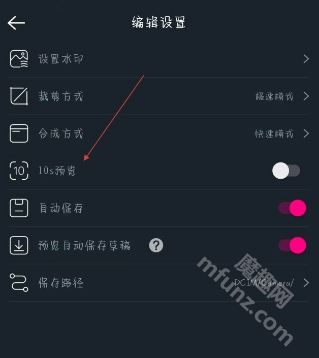在编辑设置界面,找到“10s预览功能”开关按钮。