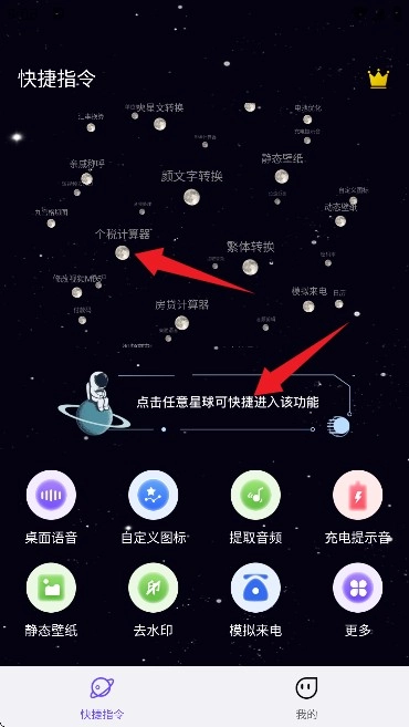 进入软件首页后,界面显示如图。点击任意星球图标即可快速进入对应功能模块,像个税计算器这类功能就可以通过这种方式直接打开。