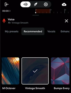 点击“+”号后选择“voice”(人声)选项,接着对“tune”(音调)参数进行调整。